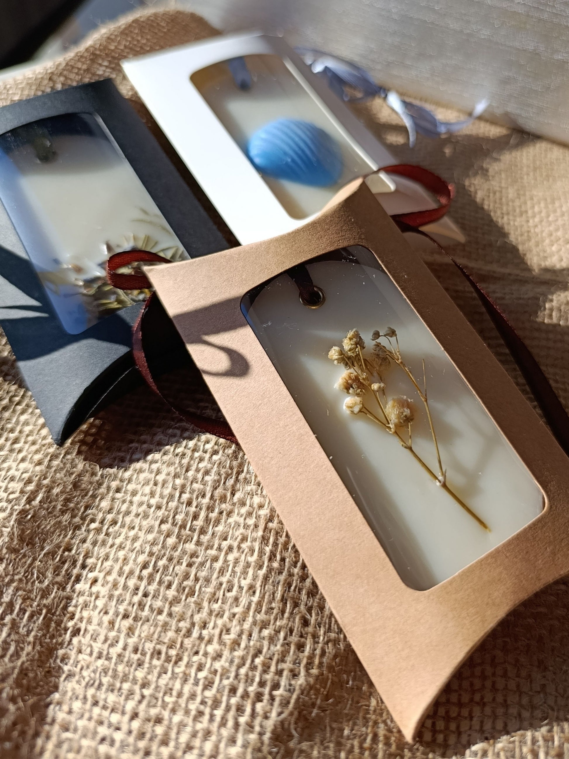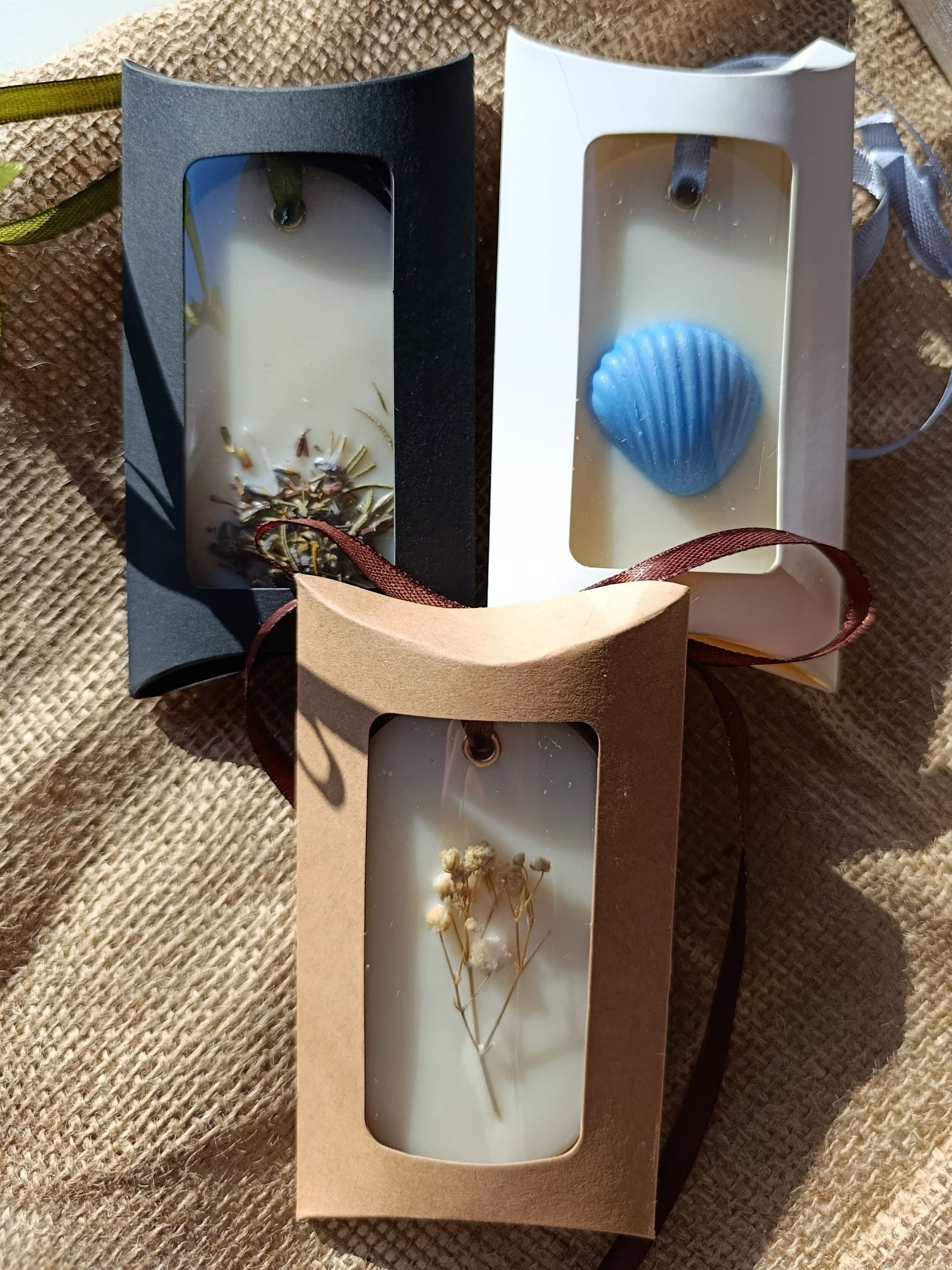Piezas de cera vegetal elaboradas a mano que llenan armarios, cajones o cualquier espacio cerrado con un aroma intenso y envolvente.
